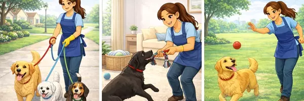 El servicio de cuidado de mascotas podrá incluir, según lo previamente acordado: